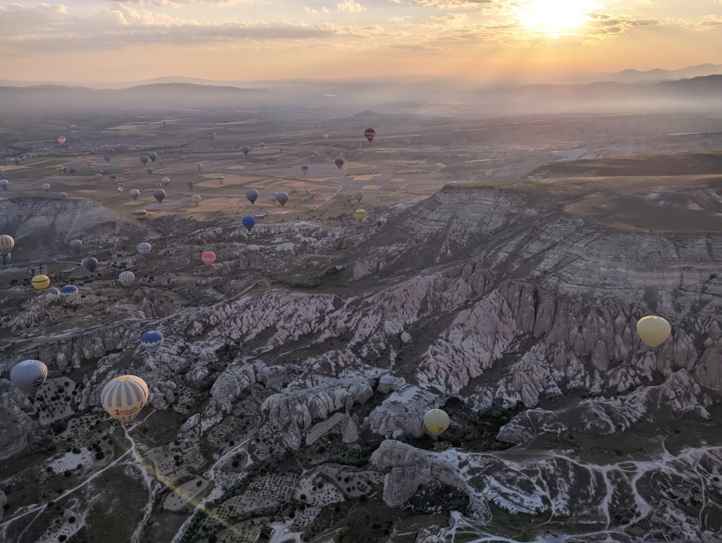 Essa horinha de passeio passou literalmente voando, mas foi (de novo literalmente) o ponto alto da Capadócia. É mega turístico? É. É caro? É. É superestimado? De jeito nenhum. Vale a pena? Muito! Sem dúvidas, recomendo a todo mundo essa experiência, é uma das coisas a se fazer uma vez na vida antes de morrer. Foto nenhuma consegue dar a dimensão da beleza desse passeio.